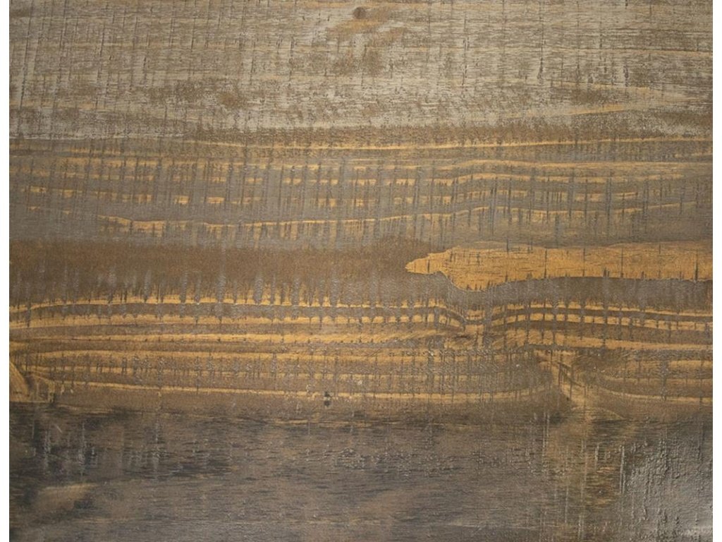 Multi-step hand-painted water-based acrylic lacquer finish in gray and brown tones for an updated reclaimed wood look.
