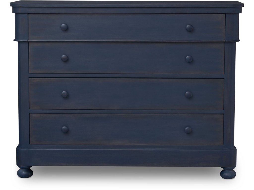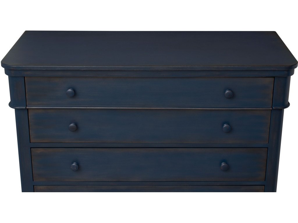 Product Description The Dorchester Accent Chest helps create a personal style statement for any room with its traditional design and timeless details. Wood knobs draw your attention to the classic styling expressed in gently rounded-off edges, turned bun feet, and fluting that emphasizes the top drawer. Store your clothing, linens, or any manner of sundries in the soft-close drawers. Opt for the finish that enhances the personality of your space -- a gently distressed Lagoon or Adriatic Blue or solid Porcelain white.