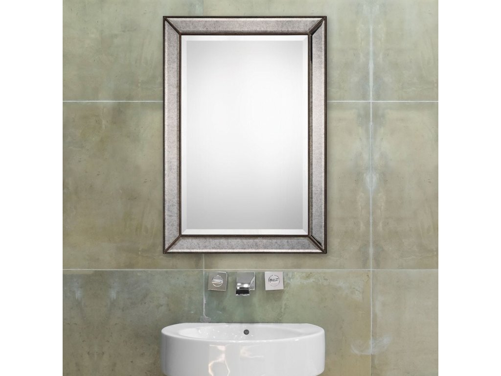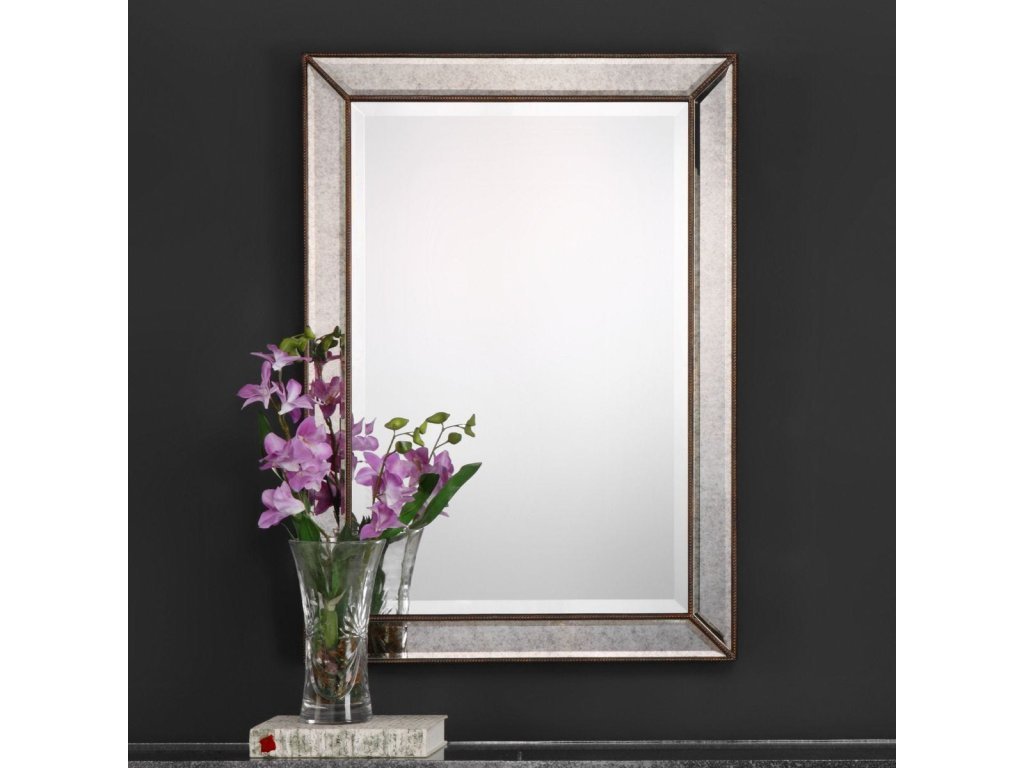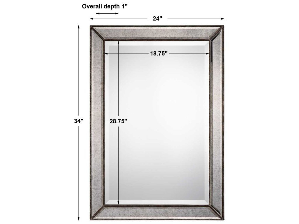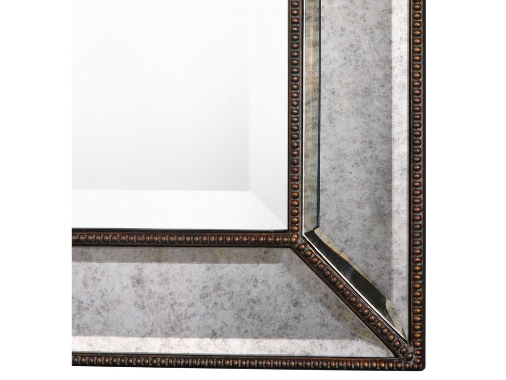 Product Description This unique frame features beveled antique mirror panels, surrounded by bronze beaded details. The center mirror has a .75" bevel and may be hung either vertically or horizontally.