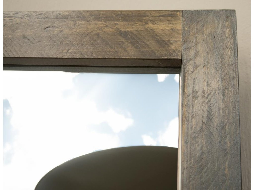 Multi-step hand-painted water-based acrylic lacquer finish in gray and brown tones for an updated reclaimed wood look.