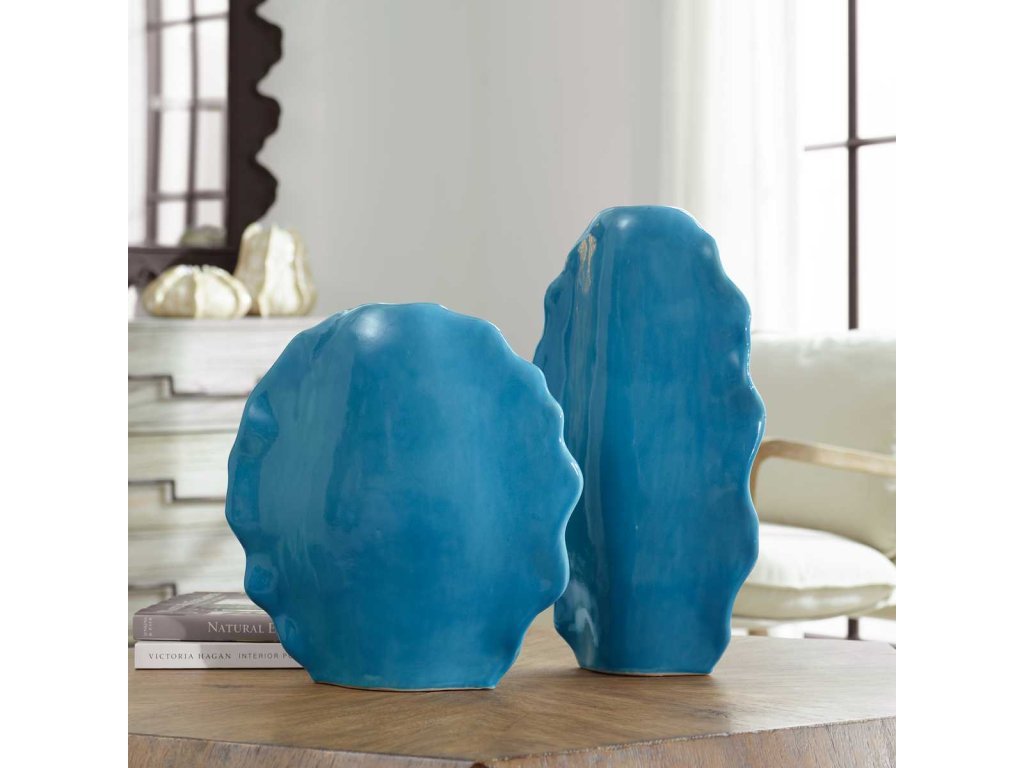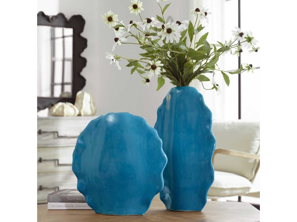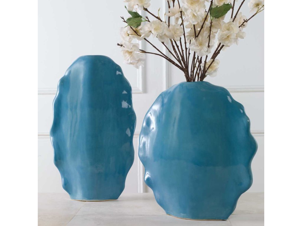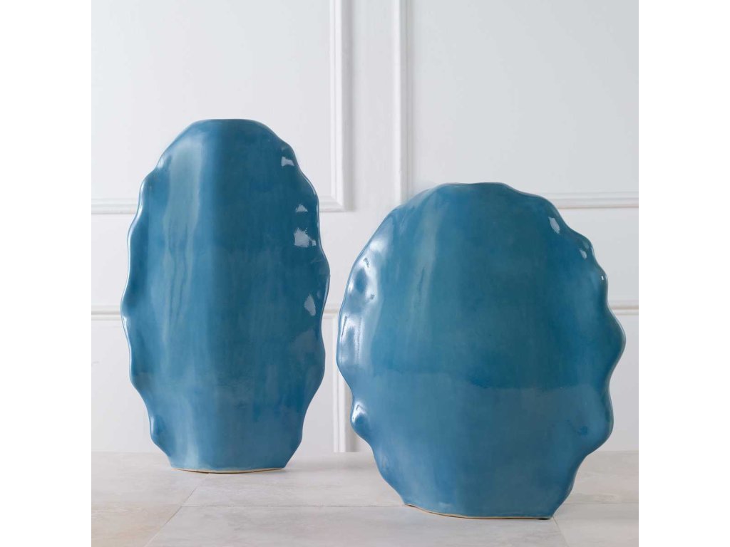 The Uttermost Accessories Ruffled Feathers Vases, Blue, S/2 is available in the Baton Rouge & Lafayette, LA area from Galeries Furniture.